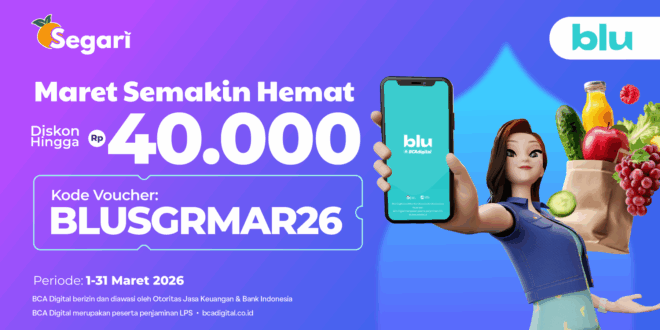 Nikmati DISKON HINGGA Rp40.000 setiap harinya di sepanjang bulan Maret 2026, khusus pembayaran pakai blu ya, Teman Segar! mulai dari bahan masakan, camilan, sampai kebutuhan rumah lainnya, semuanya bisa kamu restock! Lebih hemat pengeluaran di bulan Maret kan, Teman Segar 💙