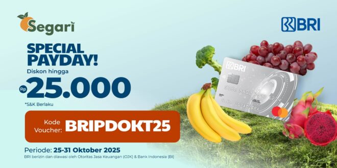 Duh, yang ditunggu-tunggu akhirnya datang juga 🥰 Special payday, Min Segar mau kasih DISKON HINGGA Rp25.000 nih 🤩 Check out sekarang pakai BRI dan masukkan Kode Voucher: BRIPDOKT25.